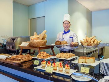 В ресторане Bay с великолепным видом на море и бассейн подают блюда интернациональной и тайской кухни. Осуществляется круглосуточная доставка еды и напитков в номер.