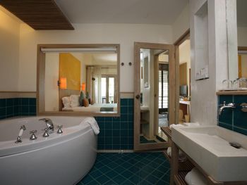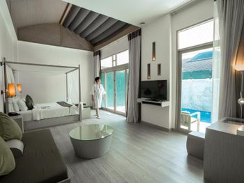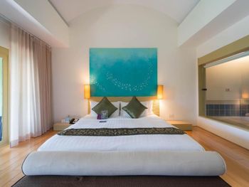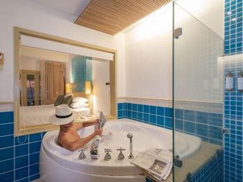 В ноябре 24-го года жили здесь на вилле с бассейном с двумя кроватями с балдахинами - одна очень большая и другая поменьше для дочери, номер был красивый, и так тогда все понравилось, что сейчас - в апреле '25-го было решено вернуться на 5 ночей снова в виллу с бассейном, но на этот раз нам попалась другая вилла и она была не очень. При заселении нам сказали что у них не бывает номеров с двумя кроватями, хотя мы знаем, что бывают, дочери прикатили такую железную складную, у мужа в момент проживания был день рождения, но никакого комплимента и поздравления от отеля не было, бассейн в этой вилле был намного меньше, стояло дерево франжипане все больное, которому явно плохо, все в жуткой плесени, лежишь в джакузи, а рядом эта плесень, к стати как раз в день рождения джакузи вдруг перестала работать, выбивало пробки, отключалась горячая вода, уличная сушилка в ржавчине, что будет портить вещи, если их туда повесить, лейка в душе не фиксировалась по высоте, а постоянно падала и могла ударить, куда ни посмотри везде трещины, зеркала в ржавчине, стеклянное окно с желтыми пятнами, так что красивых фото не получилось. На море был отлив, вода стояла мутно зелёная, камни, не купались даже, хотя осенью помню я с удовольствием купалась тут в море, ну и самое ужасное это видимо большое количество хлорки в общем бассейне, у дочери 8 лет впервые после купания началось раздражение по телу, при переезде в другой отель все прошло. Из плюсов неплохие завтраки, но если прийти попозже, то сыр и пицца например уже заканчивались, их не подносили, для меня тут очень приятные подушки, матрас, постельное белье очень приятно пахнет, а мужу наоборот не нравился матрас и подушки. Самый лучший сотрудник - парковщик, мы познакомились с ним еще в прошлый приезд и были счастливы встретиться снова. Человек работает с душой.