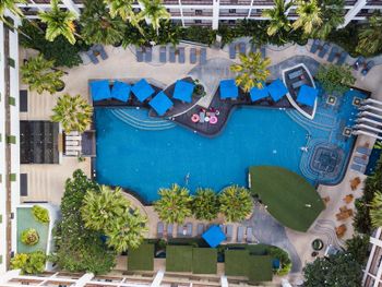 Хороший завтрак, горки для детей (и взрослых иногда), чистый приятный бассейн, неплохие коктейли с длинными happy hours с 2 до 7 pm. Не особо шумный кондиционер. Тихо в случае с окнами на бассейн.