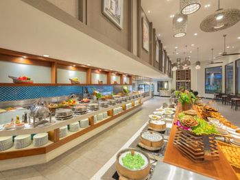 мы путешественники, для нас отель служил только местом остановки на 2-3 дня. предоставили маленькую кроватку, итого разместились 2 взрослых, 2 ребенка 3 и 1 год без доплат. исходя из нашего стиля путешествия, больше 2х дней в отелях делать в принципе нечего. нам нужно было только сразу остановиться где нибудь сразу после прилета и потом уже переехать в квартиру. на ресепшн видно что отбоя на пхукете от клиентов нет, сытые, не идут на уступки. шведский стол - богатый.