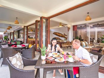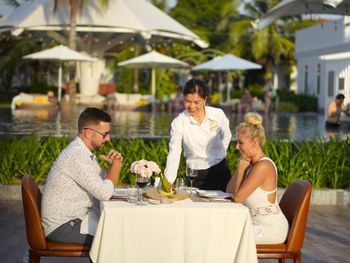 Ресторан и обеденная зона очень грязные. На столах за завтраком постоянно крошки, официанты работают спустя рукава.сервиз очень низкий, к сожалению. Такое ощущение, что всем все равно. В первый же день отдыха в ресторане обсчитали и приписали сок которого не было. Плюс фреш был разбавлен водой, хотя просили не добавлять ни лед, ни сахар, пусть будет меньше обьем, но зато будет вкусный. (Такой же опыт был у нас и в Хошимине, поэтому после того случая стали проверять счет.) в целом отель неплохой и многие старались сделать наш отдых приятным, но первое впечатление были испорчено. Впрочем, потом когда кушали опять в отеле, счет приносили опять с ошибками, снова все пересчитывали. (Т.е. такое отношение это не случайность, а похоже закономерность) однозначно нужен хороший менеджер в отеле.