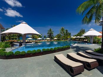 Единственный плюс этого места - море, если погода хорошая, и красивый ухоженный сад. Персонал не напрягается поддерживать чистоту. Стакан грязный может простоять сутки на столе. Как и мусор в вашей комнате. Вчера уборка пришла в 8 утра!!! А сегодня вообще не пришла…На пляже куча мусора, который никто не убирает, как и на самой территории. Валяются пачки от сигарет и окурки. Туалет у бассейна как на вокзале: ни бумаги , ни уборки. персонал любезный, но это не спасает в условиях совершенно устаревшего отеля: слабый напор воды в душе, сильный запах канализации, разнообразные мухи и жуки в ванной комнате. Начиная от «роскошных» вил, где все уже пора давно менять (смотри фото), заканчивая вонючими полотенцами на пляже. Крайне не удобные лежаки на пляже. Еда не плохая и по адекватной цене. Но ждать свой заказ приходится достаточно долго, не смотря на то, что мы отдыхали в момент , когда отель был заселен на 30 процентов. Тянет максимум на три звезды. Не стала бы советовать это место людям, кто летит сюда издалека. Я много путешествую по Вьетнаму и есть с чем сравнить. На Фукуоке есть гораздо более достойные отели по этой цене. Это худший отель из сети отелей mercure , в котором мне довелось побывать. Детям делать тут нечего вообще. Кроме детского бассейна. Самолеты взлетают прямо над вашей головой каждые 15 минут. Так как до аэропорта ехать 5 минут. Крайне не понравилось, что в Спа работает только одна массажистка. Которая к слову взяла отпуск через два дня, как мы приехали. И никого ей на замену не поставили.а самое неприятное было при заселении, когда мне объявили, что я должна доплатить за ребёнка (7 лет),хотя он был внесен в бронирование и конечная стоимость была с учетом его присутствия и возраста! В номерах нет халатов и тапочек, а так же все шампуни и гели для душа размером с горошину. На пляже и у бассейна нет спасателей. На завтраке стоят пустые блюда. Вчера на территорию пришло через пляж стадо коров, которые пили из бассейна и ели растения