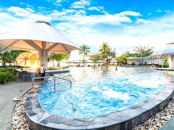 Бассейн отличный, но джакузи включали редко, за 6 дней ни разу не увидела, хотя ходили в разное время. Отелю очень повезло с Тин, она очень замечательная, знает русский и помогала нам во всем, даже свой ноут дала для набора русского текста и отправки сообщений. Организовала нам экскурсию по острову. Рекомендую посетить канатку и пляж Бай САО. В общем, без неё нам бы было грустно, остальному персоналу у неё надо поучиться работать. В аэропорт отвозят, ехать 5 минут. Кстати, самолеты взлетают над отелем, красиво и негромко.