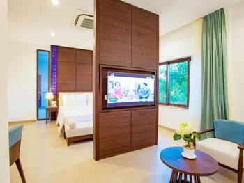 Отличная вилла, отличный пляж, замечательные завтраки, персонал отеля просто топ 👌🔥. Имейте в виду отель находится в 10 мин езды от центра, где находится крупный супермаркет, множество кафе и т.д. У нас был байк, поэтому для нас это не было проблемой. Также, можно передвигаться на такси Grab, недорого. Если прогуляться 10 мин по пляжу направо, то дойдете до пляжа с самолетами (там они заходят на посадку), если налево, то там пляж со слониками в воде.