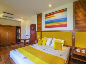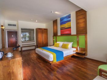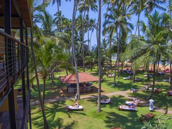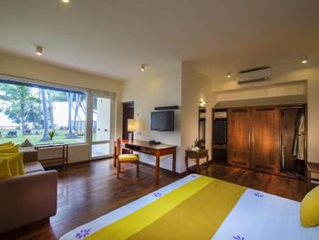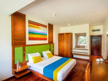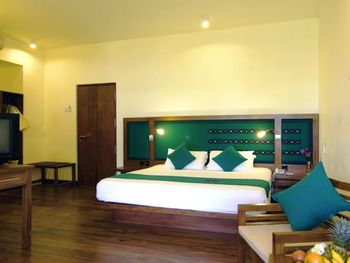 Останавливались семьей с детьми на несколько дней, брали улучшенный номер с выходом к океану. В номере чисто, большая кровать, красивая большая ванная с окном и видом на океан. Терраса перед номером со столиком. У отеля красивая зеленая территория с выходом к океану, бегают бурундуки и птицы, дети были в восторге . Хорошее питание, есть что выбрать и для детей. Всегда были фрукты. Один день даже мороженое на обед. Суть система все включено, но мы брали с завтраками, по месту покупали обеды (10тыс рупий на семью 2 взрослых+2 детей). Океан почти всегда тут штормит, купались в бассейне. На территории есть спа, хорошие недорогие массажи и процедуры. На выходе всегда стоят тук-туки, можно без проблем съездить в город. На территории отел кулеры с водой.