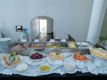 Пансион, шведский стол, разнообразный, есть множество местных блюд, соки свежевыжатые и ассорти спелых фруктов. Стол сразу сервируют достаточным количеством приборов, посуда чистая.
