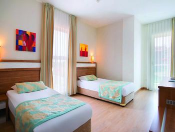 По просьбе разместили в номере с большой кроватью, рядом с транспортом, удобно для самостоятельного перемещения, убирали и меняли постель каждый день, еда разнообразная, всегда зелень, мясо, курица, рыба, турецкие сладости, турецкое вино и крепкие напитки без ограничения, для активных путешественников .после 12 тишина, можно отдыхать.