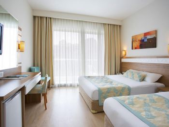 Просторные номера спа-отеля Merve Sun оборудованы кондиционером и спутниковым телевидением. В числе удобств гостиный уголок и балкон с видом на окрестности.