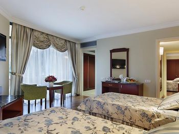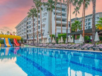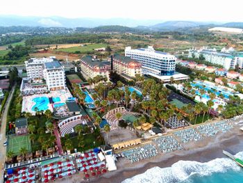 Этот 5-звездочный курортный отель находится на берегу моря в городе Аланья. На террасе у большого открытого бассейна установлены шезлонги. В распоряжении гостей номера с кондиционером и балконом с панорамным видом на окружающий пейзаж.