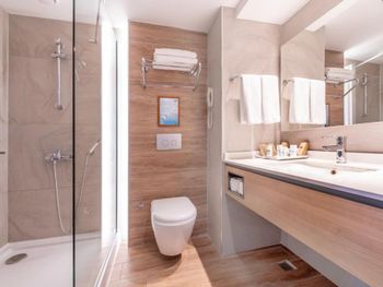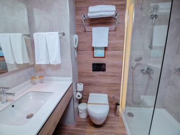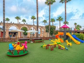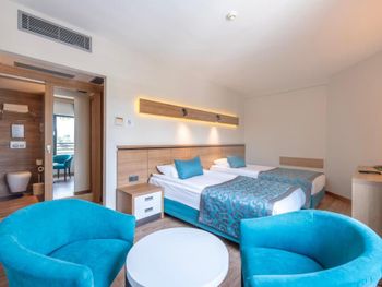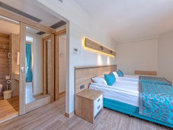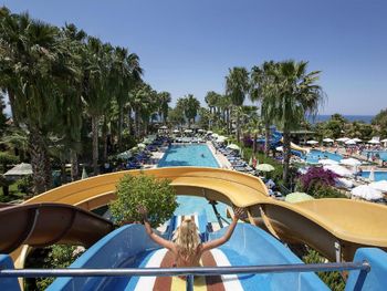 отель очень компактный, но есть все- и несколько бассейнов, и мини детский клуб и бары и горки( 15-16 апреля не работали, думаю, еще не сезон). Номер у нас был семейный, двухкомнатный, с 3!!! балконами! номер шикарный, все чистое, не уставшее. халаты были только для взрослых( с нами было 2 наших детей), но мы для детей взяли халаты, поэтому это не проблема была. мини бар в номере платный, но мы обошлись- в баре это все было в избытке. Ресторан- завтрак стандартный, но все есть- овощи, несколько видов яичниц, фрукты, чай, кофе, булочки- голодными не были, все действительно вкусно. Обед- тут тоже никаких замечаний- мясо, рыба, суп, овощи, зелень, десерты( я равнодушна к сладостям, а тут часть десертов ела с огромным удовольствием)! Ужин- тут выше всяких похвал!! несколько видов мяса, НЕСКОЛЬКО видов рыбы, и так далее( всего просто не перечислить). Особое внимание обращу на отдельное приготовление макарон с различными соусами и добавками в виде овощей, оливок, сыра и так далее.. Это просто божественно!! По алкоголю- тут все отлично.Я вино не пью, но тут меня покорило розовое вино- очень приятное!! Бассейн внутренний хороший, мы все время были там одни👍🏼 пляж тоже хороший, в море окунулась- еще прохладно, может поэтому бар на пляже работает не в полную силу.