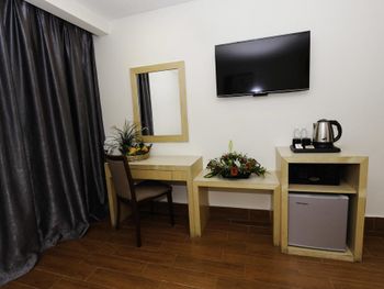 Смотря фотографии на букинге , сложилось впечатление что номер не плохой. Но заселившись были крайне разочарованы. Номер честно сказать вызвал ужас , запах какой-то стоял невыводимый, окна с прокладками из бумаги , двери в номере с щелями более чем палец. Ваучеры дали на завтрак так вообще непонятно где и какой то бистро индийское что ли , но нам оно вовсе не зашло. Телевизор не работал