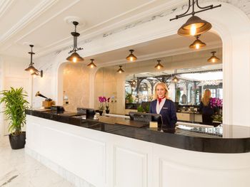 В просторном лобби, похожем на крытый зимний сад и украшенном роскошными мраморными и коваными декоративными элементами, создана непринужденная расслабляющая обстановка. Здесь гостям предлагают фрукты и превосходные закуски. У стойки регистрации, открытой круглосуточно и без выходных, предоставляется услуга аренды автомобилей и туристическая информация о достопримечательностях Стамбула.