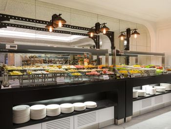 Еда на завтраке довольно вкусная, единственное - очень неудобно, что нет автоматов с чаем-кофе. Напитки приходится заказывать у официантов, которые не торопятся сразу всё приносить. А если вас спустя время всё-таки обслужат, то принесут очень маленькие чашки. Грязные тарелки убирают тоже не сразу, учитывая, что столы небольшие, это также создает некоторое неудобство.
