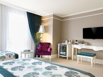 В распоряжении гостей роскошные номера, оформленные в светлых тонах, с кондиционером, ЖК-телевизором, чайником, мини-баром. Ванные комнаты с феном и стеклянной душевой кабиной с тропическим душем отделаны мрамором. В отеле обустроены залы для проведения совещаний.