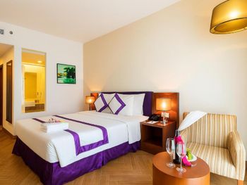Безжизненный район, где находится гостиница. До ближайшего обменника ~13 минут пешком, там же появляются какие-то скромные магазинчики. Кафе/ресторанов, а так же сетевых хороших супермаркетов - нет. Рядом аптека со скудным выбором, и малюсенький продовольственный магазин. До моря 2 минуты, есть аж 6 лежаков с зонтиками от гостиницы)) Сама гостиница хорошая, приличные завтраки с вьетнамской и европейской кухней, голодными не останетесь. Проблема с грязным ковровым покрытием в номерах действительно есть! Выглядит страшно, давно уже надо заменить этот ужас. Мебель (стол, тумбы, кресло) старые и тоже уставшие. Ко всему остальному в номере вопросов нет. Сильно уставший спортзал! Обычный бассейн и лягушатник для деток. В целом, считаю, что гостиница подходит для абсолютно пассивного отдыха)) Снимаю звезду за грязный палас и отсутвие жизни на районе.