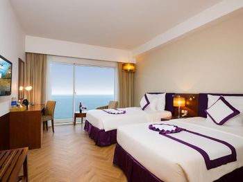 Практически никто из персонала не говорит по-английски. Бар возле бассейн постоянно пустой, персонал вы не найдете, поэтому если вам что-то понадобится, не надейтесь это получить. Сам отель грязный, на ковровом покрытии огромные пятна, как в коридорах, так и в комнате. Уборка номера очень посредственная - зашли, мусор убрали, водичку поставили, убежали. Полы никто не пылесосил и не мыл за 15 дней проживания. Сломался сейф. Завтраки вьетнамские - вроде выбор есть, а кушать нечего, потому что там исключительно вьетнамская ужасная еда, европейцу будет сложно найти что-то для себя. Из пяти звезд о которых заявляет отель, четыре нужно забрать.