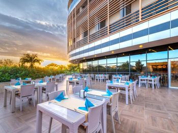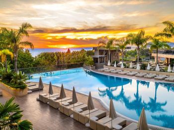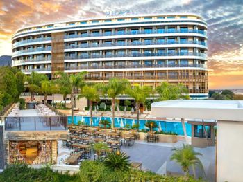 отличные номера, практически все с открытым видом на море и горы (отель на возвышении). прекрасное, разнообразное питание (в том числе и на пляже). если не нужен пляж, то оценка 9/10. отлично подойдёт для отдыха в не сезон (ноябрь-апрель).
