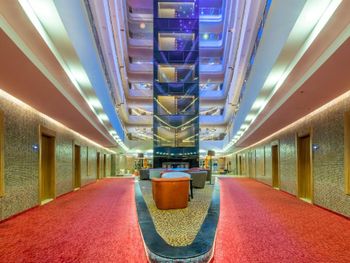 Сам отель большой, комнаты расположены по кругу. Не понравилось как работали лифты. Мы предпочитали ходить пешком, потому что лифт невозможно было дождаться. Он не работал по принципу еду только вверх и по пути собираю, он ездил хаотично. Еще особые умники тыкали кнопки сразу обоих лифтов, вместо одного, который ближе к их этажу и в итоге получалась что к кому-то ехало два лифта. Зачем люди так делают не понятно. Почему не настроить лифт так, чтобы к человеку ехал только один, а не сразу два тоже не понятно. Находились и те, кто еще боковые лифты вызывал за одно. Короче любители ездить на лифте, готовьтесь ходить пешком, потому что дождаться лифт это ад.