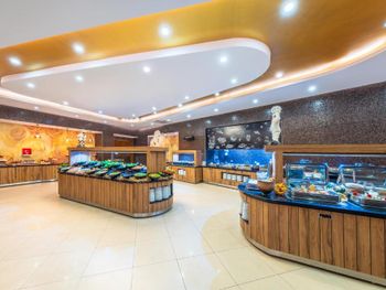 Третий раз останавливаемся в отеле, европейский сервис на турецком отдыхе. Нам очень подходит и нравится такой формат. Да за не которые услуги нужно доплачивать , на пример wf , работает только в Холле , но за доп. Плату , будет работать и в номере и на пляже, 15 евро 10 дней. Питание разнообразное, но без излишеств, из море продуктов только рыба.