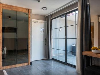 Несмотря на скромность завтрака, хлеб был свежим и к нему прилагалась порция орехово-шоколадной пасты, давно такого не встречал. Завтрак состоит из одного вареного яйца, двух кусочков сыра, двух кусочков чего-то типа колбасы, восьми оливок, кусочка неплохого кекса, корзинки с хлебом и порционных масла, меда, джема и пасты, а также чашки чая — весьма скромно. Но в кафе отеля в целом хотя бы приятно. У букинга недостаточно места для "не понравилось", поэтому часть минусов будет здесь: 23. Вместо заявленного балкона в подвале получилась яма с высокими глухими стенами и брезентовым потолком. Выход в неё через очень туго открывающуюся сдвижную дверь 24. В яме ужасно грязный пол и всё покрыто пылью 25. Гидромассажная ванна не в номере, а в этой яме. Температура воздуха там будет примерно как на улице 26. Горячая вода в кране еле теплая 27. Гидромассажная ванна cтарая, вся в трещинах, ужасно грязная, в пыли и мелком строительном мусоре. На ресепшене велели самостоятельно её помыть 28. Гидромассажная ванна для двоих, но массаж будет только для одного, половина ванны не работает 29. При включении гидромассажа потекла вонючая вода, пришлось сливать ванну и набирать заново 30. На брезентовом "потолке" ямы образуется конденсат и капает на лицо 31. В яме из мебели только потертый каркас диванчика из натурального ротанга без подушек, кресло из искусственного ротанга и стеклянный стол с разбитым пустым подсвечником 32. В яме темно даже днём, работает только одна лампа из трёх 33. В яме отличная слышимость. Слышны разговоры с улицы, слышен лай собаки. Собаку слышно и в номере при закрытых дверях 34. В целом вроде интерьер номера симпатичный, но в деталях всё грустное: плинтуса шатаются, двери перекошены, "балконная" дверь едва открывается и из неё выдернуты уплотнители, ванна и светильники перемазаны краской, местами потёки и паутина, даже на телевизоре строительная пыль