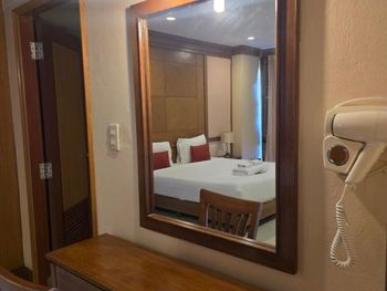 Прожили в отеле неделю, в целом понравилось. Хороший, просторный номер с видом на море, большой балкон. Хорошее месторасположение отеля, все есть рядом: массажные салоны, кафешки, круглосуточный магазин Family Mart, 7/Eleven. По близости Alcazar и Tiffany шоу, торговые центры Terminal 21 (у фонтана с дельфином на пересечении Северной улицы и Секонд роад) и Central Festival на Beach road. В номере чайник, холодильник, фен. По TV два российских канала. В номере убирались ежедневно, меняли постельное белье и полотенца, к работе горничных претензий нет, кроме немытых окон и пыли в шкафах. Персонал вежливый и очень доброжелательный, всегда готов помочь. Заказывали в городе в туристическом агентстве экскурсию, накануне экскурсии изменилось время выезда, почему-то позвонили не нам, а на респшен отеля. Отдельное спасибо отельному клерку, который предупредил нас и помог выяснить необходимую информацию. К сожалению, не знаем его имени. В связи с ранней экскурсией в отеле предоставили ланч-пакет вместо завтрака. Завтраки в отеле вкусные, но немного однообразные. Внизу на лобби можно бесплатно получить и поменять пляжные полотенца. Море в пределах Beach road никакое. Хотя есть два выделенных места для купания, одно напротив отеля Holiday Inn, а другое по центру, но здесь не купались и никому не советуем. Купаться ездили на пароме на остров Ко Лан.