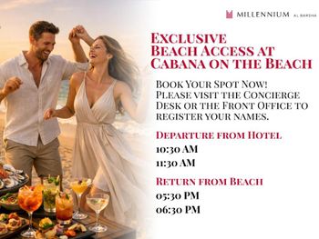 Отель Millennium Al Barsha расположен в нескольких минутах ходьбы от станций метро Mashreq и Mall of The Emirates. Всемирный торговый центр находится в 8 км, а центр Дубая, торговый центр Dubai Mall и небоскреб Бурдж-Халифа — всего в 14 км.