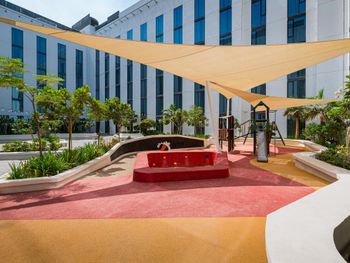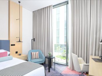 Лучший завтрак в отеле который у нас был, хотя мы не так часто путешествуем, есть с чем сравнить. На крыше небольшой бассейн уютный, во дворе парк с детской площадкой. Номер с умным домом.