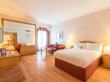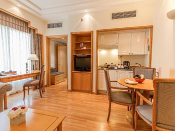 Мы приехали в отель ночью и нам любезно предложили сделать апгрейд. Вместо однокомнатного номера дали апартаменты из двух комнат. Проживали мы втроем. Отель потрясающий. Завтраки шикарные.