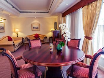 Персонал на ресепшн хороший, всегда учтивы и старались решить проблемы, уборка номеров не очень, но возможно это из-за того, что сам отель устаревший. Номера мы выбирали люкс и представительский люкс с разными ценами, но по приезду оказалось что нам выдали одинаковых номера, но после нашего возмущения поменяли один номер на роял сьют. Питание вкусное но одинаковое и чуть скудноватое, хотя мы питались всего два раза, каждый раз блюда были одинаковыми.