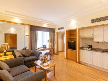 Отель расположен в центре города, в пешей доступности от набережной Корниш и городского пляжа (около 25-30 минут прогулочным шагом). Рядом находятся остановки автобусов в различные части города, в том числе, остановка автобуса в аэропорт - в 10 минутах ходьбы от отеля. В ресторане отеля организовано хорошее полноценное питание. Я брала завтраки и ужины. Большой выбор блюд, есть всё, чтобы получить полноценный приём пищи: мясные, овощные блюда, омлет, каши, нарезка сыра и колбасы, много выпечки (круассаны очень вкусные!), натуральные соки, различные виды кофе из кофе-машины, нарезанные фрукты (ананас, дыня, арбуз, яблоки). На ужин - несколько мясных блюд, бывает рыба. Обратите внимание: некоторые блюда достаточно острые. Много очень вкусной выпечки: пирожных, муссов, пахлава нескольких видов. В качестве десерта предлагаются орехи, курага, изюм, финики. Персонал ресепшена очень приветливый. Быстро проводят процессы чек-ин и чек-аут. В бизнес-центре можно самостоятельно распечатать билет на самолёт. Рекомендую этот отель!