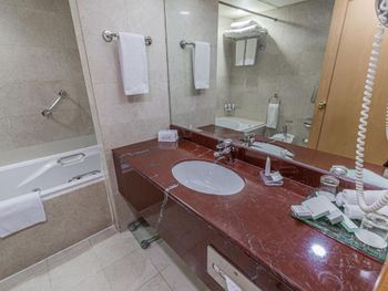 В очередной раз останавливалась в этом отеле с прекрасным обслуживанием. Здесь есть всё, что нужно гостю города: прекрасная кровать с в меру жёстким матрацем, комфортными подушками и лёгким одеялом. Кондиционер на охлаждение работает исправно, при желании можно выключить. В номере есть холодильник, а также мини -бар с чайником, кружкой, ложкой, а также чай (чёрный, зелёный), растворимый кофе в пакетиках, сахар и порционные сливки. В ванной комнате есть ванная, душ на гибком шланге, на стене размещены гель для душа и мытья рук, шампунь, кондиционер для волос, лосьон для тела. На крыше отеля расположен бассейн. К сожалению, в период моего пребывания он был на ремонте.