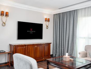 Номера и люксы отеля Мillennium Doha отделаны роскошными тканями. В числе удобств современная ванная комната. К услугам гостей бесплатный Wi-Fi, принадлежности для чая/кофе, телевизор с плоским экраном и рабочий стол.