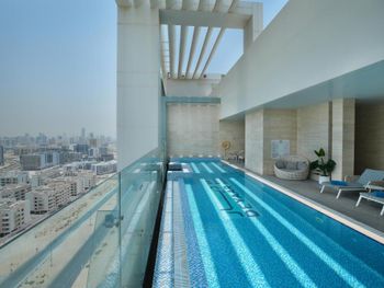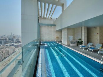 Самое главное - не стройте завышенные ожидания касательно данного отеля. За эти деньги в данное время в Дубае - это ок. Самое основное из плюсов - если вы на машине, то расстояние до центра не проблема. Зато очень спокойно и тихо на улице, нет жуткого движения. Номер большой, нам очень понравиласт кровать. Очень вежливый и приятный персонал. При регистрации заезда бронируют 200 АЕD еще как залог, можно оплатить наличными, тогда вернут сразу при выезде, если картой - то 7-10 рабочих дней. Удобная подземная парковка. Рядом магазин (ходили пешком 2 мин), там есть carrefour, mc\'donalds, пиццерия. На крыше небольшой бассейн с теплой водой. Но позагорать не получится, он как бы в крыше находится и солнца там практически нет.