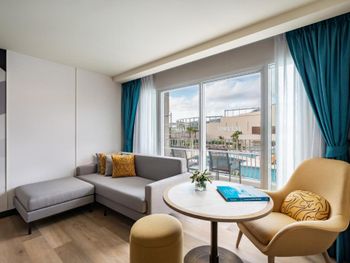 Советую конечно брать номер с выходом к бассейну. Они дороже но это того стоит. Завтраки хорошие и разнообразные. Отель расположен среди торговых центров. До моря пешком не спеша минут 15.