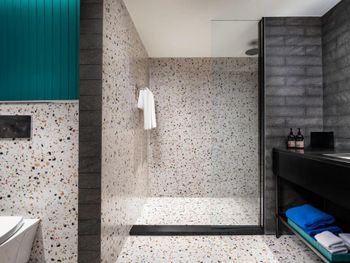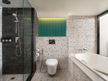 - Пол в ванной очень холодный, одного полотенца не хватает , тем более которое при выходе из душа становится мокрым