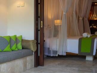 Уютные номера и бунгало оформлены в современном индонезийском стиле и залиты естественным светом. В каждом номере есть гостиный уголок, мини-бар и ванная комната с душем.
