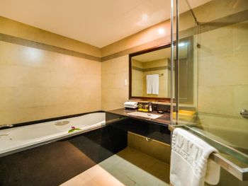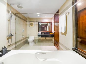 В элегантно оформленных номерах и люксах установлен кондиционер и постелен паркетный пол. В распоряжении постояльцев электронный сейф, шкаф и телевизор с плоским экраном и кабельными каналами. Также имеются мини-бар и электрический чайник. В ванной комнате в номере вы найдете душ, фен и халаты.