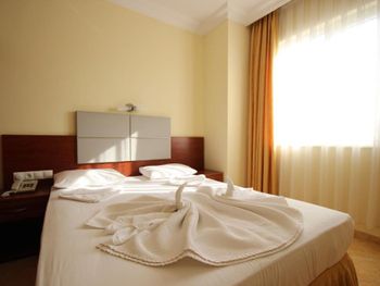 1. Начнем с того, что размер номера сильно преувеличен, вместо 45 квадратов, там от силы - 25, в ванне вообще не развернуться, зубы вы сможете чистить только сев на унитаз 2. Да, пляжа в принципе нет, есть арендованный участок общего пляжа в 10 минутах ходьбы. Он хорош, есть все развлечения: от banana boat до yacht trip и неплохой бар. 3. Не поздравили с днем рождением даже на словах. Нонсенс для Турции. Улыбки? Не, не слышали... 4. Но все это мелочи, кроме того, что в отеле ВОРУЮТ. Украли часть денег из рюкзака. Доказать ничего не смогли, в номерах камер нет. Хозяева, к сожалению, профессионально решить вопрос не смогли. Оставили гнетущее впечатление от сервиса и методов работы с гостями. 5. За продление номера на несколько часов взяли сумму за целые сутки, хотя отель был полупустой. Это вообще нонсенс во всем мире. В целом отель малюсенький, скучный, с видом на дорогу, еду заказать можно строго по расписанию ( за доплату, конечно).