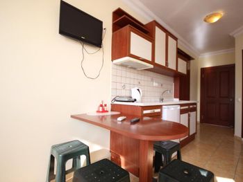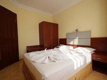 Качественная уборка в номерах каждые два дня. Остановка автобусов рядом с отелем. Чистое море. Предоставляют пляжные полотенца. There are no shelves in the cabinets; there is nowhere to put clothes. Furniture is selected and arranged irrationally. The TV receiver is small, it receives only 3 Russian channels and in poor quality. There are no shelves or hooks in the kitchen area. The air conditioner works only when it’s in the room itself (an electronic key is inserted, they don’t give a second one). Air conditioning only in the kitchen-living room. Accordingly, you can’t sleep there - there is no way to place the bed so that it is not under air conditioning. With the air conditioner turned off, the room is very stuffy and high humidity. The bathroom has one small shelf and few hangers. The bathroom is very small. Using the toilet, you run into the sink. The ventilation of all the bathrooms in the hotel goes into a common corridor. There is no declared sound insulation - in the room you can hear everything that happens in the hotel lobby and corridor. There is no air conditioning in the lobby. ventilation through open doors and a roof dome. All day and night the doors of the hotel wide open. The disgusting quality of the Internet is practically enough only for correspondence in instant messengers. The assurance of the manager that this is the case in all Kemer is not true. In decent restaurants, the connection is stable. There is no restaurant in the hotel; managers themselves are preparing it. If you need breakfast, dinner, you must order in advance. In the evening, they cook on the street, respectively, "aromas" are distributed throughout the territory. The hotel is located very unsuccessfully, on the outskirts of Kemer, there are no food shops and restaurants nearby.It makes no practical sense to rent apartments here in order to prepare food for the child; it makes no sense to shop at a distance of 1.2 km from the hotel. Tired of wearing groceries.