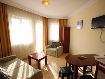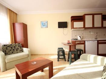 Описание не соотвествует действительности. Правильнее было-бы написать: - "Апартаменты второй линии, с плохой шумоизоляцией и плохими спальными пренадлежностями для туристов, которым все равно где находится". Выбирая отель я понимал, что за такую невысокую цену не стоит ожидать комфорта класса "Люкс". Но реальность оказалась неприемлимой. Апартамены находятся прямо у проезжей части, звукоизоляция отсутствует, как таковая. Наш номер соседствовал со стойкой регистрации и по ночам там всегда было шумно. Мебель в номере ужасная, обшарпанная. Диван-кровать заслуживает отдельного описания. Он настолько изношен и продавлен, что владельцы отеля не придумали ничего лучше как приспособить к нему подпорку, которая превратила диван в некое подобие средневекового устройства для причинения боли. По факту это софа с горбом посередине. Туалетная комната очень тесная и обшарпанная. Пластик на электрических розетках болтается и отваливается. До пляжа нужно идти к выезду из города, туда, где заканчиваются пляжи отелей первой линии. Можно придти на эти пляжи, напротив апартаментов. Но будьте готовы к тому, что вас могут попросить покинуть частную территорию. По-видимому владельцы отеля начисто лишены совести или нам очень сильно не повезло с номером. Наверное, правда где-то посередине. Мы уехали досрочно, так как оставаться здесь дольше было невозможно!