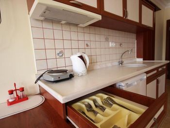 Хорошие апартаменты за свои деньги. Хозяева очень доброжелательные, помогли по всем возникшим вопросам. Обстановка в апартаментах соответствует фото. Постельное белье и полотенца чистые. Для меня расположение комфортное, рядом с апартаментами продуктовый магазин carrefour и аптека. 10-15 мин пешком до пляжа или до центральной башни Кемера. Апартаменты предоставляют доступ на пляж «Веранда», достаточно просторный и ухоженный: шезлонги с зонтиками, душ, кабины для переодевания. За доп плату бар с едой и напитками и кабинки для пляжного отдыха с подушками. Фото апартаментов прилагаю в день нашего отъезда, поэтому немного бардак)