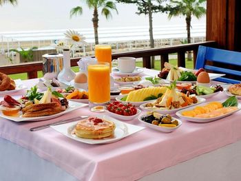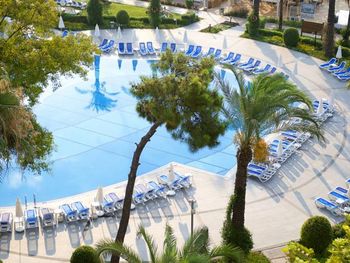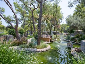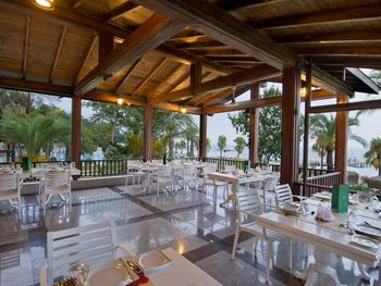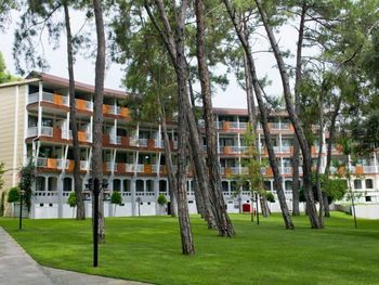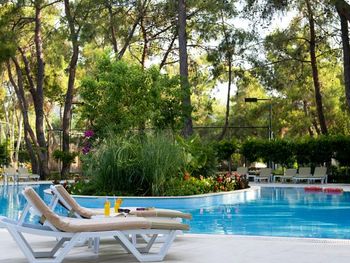 в поселке Гёйнюк, в 9 км от Кемера, в 49 км от аэропорта. На территории отеля зелёный сад. Транспорт - такси, автобус.