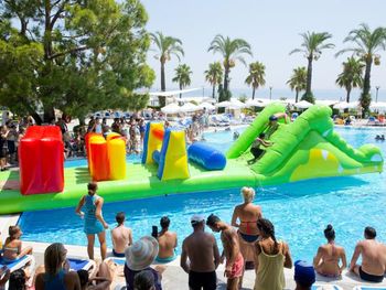 2 открытых ресторана, 1 крытый ресторан, 8 баров,15 конференц-зала, 3 открытых бассейна, 1 крытый бассейн , аквапарк, 7 теннисных кортов, сейф, парикмахерская, прачечная, 6 лифт, услуги врача, персонал отеля владеет немецким, русским и английским языками, анимация на немецком, русском и английском языках.
