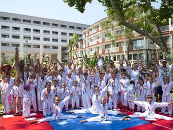 бассейн (20 кв.м), мини-клуб (возраст 4-12 лет, ч.р. 10:00-12:30/14:30-17:30), детская площадка, няня (платно), в ресторане детское кресло.