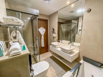 Приятный персонал обслуживания клиентов отличное. Уютный, комфортный, чистый номер, пляж и бассейн. Спасибо MIRAGE BAB AL BHAR ЗА отличный отдых.