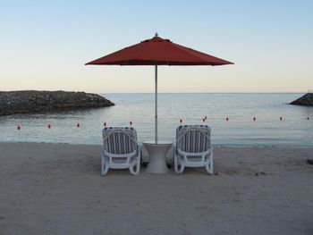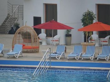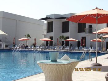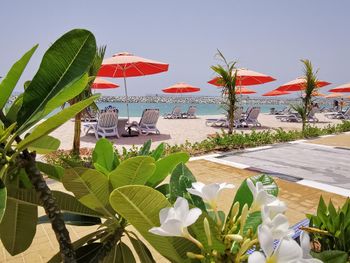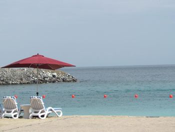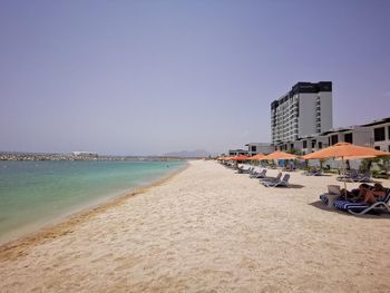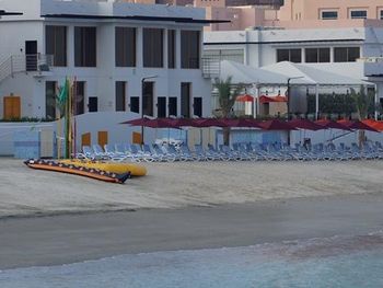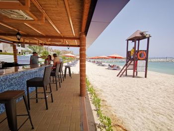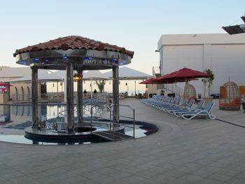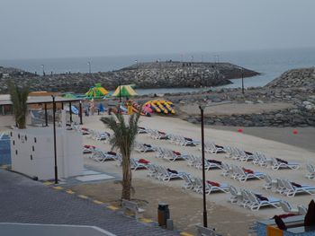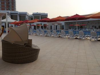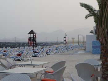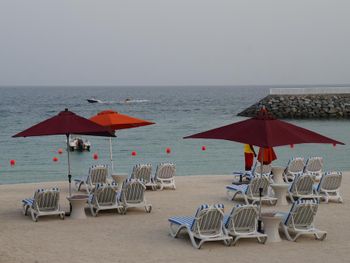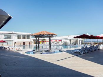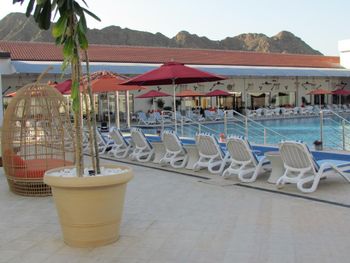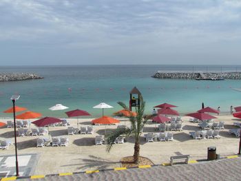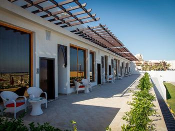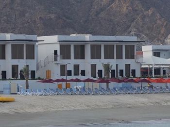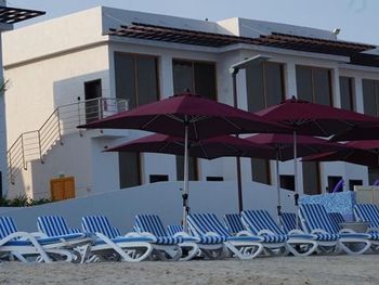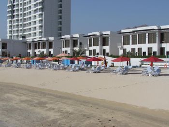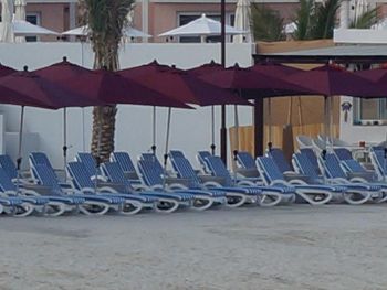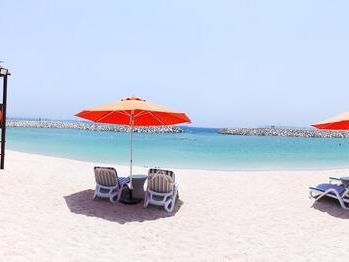Гости отеля Mirage Bab Al Bahr Beach Resort могут отдохнуть на террасе для загара.