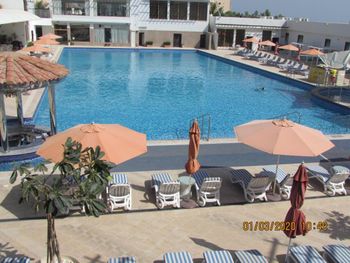 В первую же ночь у нас сломался кондиционер и мы до 7 утра не могли спать в жаре. Когда я в 7 часов пришла на рецепшен, администратор сказала, что мастер будет только в 9. Я попросила нас переселить, был свободен 1 номер не с видом на море и 2-мя односпальными кроватями. Но выхода не было и пришлось снова собирать вещи и переезжать. Попросила в виде компенсации за причиненные неудобства хотя бы нас день покормить, так как номер был без питания, но получила отказ. После 2 напоминаний принесли тарелку с фруктами. Так что отдых был подпорчен. Еще: нас не предупредили, что полотенца пляжные выдают с 9.15, мы вечером сдали полотенца, а утром до 8 все шезлонги уже были заняты, гости с вечера оставили свои полотенца, а мы остались без мест. На второй день и мы так сделали, но так как у нас было всего 2 дня, первый день прошёл насмарку 👎🏻. Отель конечно уставший, шезлонги и зонтики умотанные. Рядом с отелем только в километре ходьбы есть фруктовый рынок и кафешка, брльше ничего. Море хорошее, освежающее, видели много рыбок и 3 черепахи.