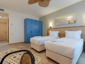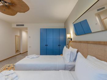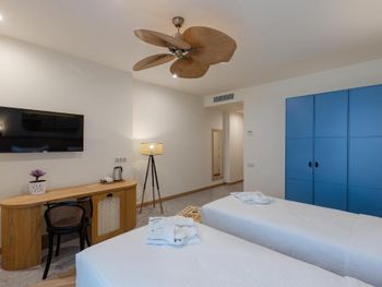 Отличное месторасположение. Везде близко. Был номер с видом на море и балконом. Это большой плюс, за который и цена не маленькая. Правильно расположен кондиционер в номере. В остальном отель не тянет на 5 звёзд. Один халат на двоих, уборка так себе, туалетную бумагу приходилось просить, нет принадлежностей для чистки зубов, полотенца и купальники с пляжа сушить негде, только на стульях на балконе.