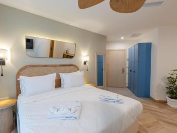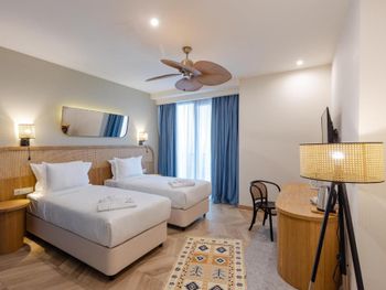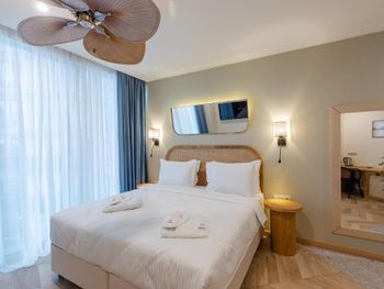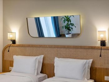 Брали обычный номер, но когда освободился с панорамными окнами, переехали в него. Очень чисто, слышно только шум моря и лягушек. Рядом стройка, но шума нет. Это отель, состоящий из четырех этажей в многоэтажной стекляшке, поэтому нет завтраков, поэтому так дешево. Персонал говорит на разных языках и очень дружелюбен. Перед заселением и оплатой показали все номера и дали выбрать
