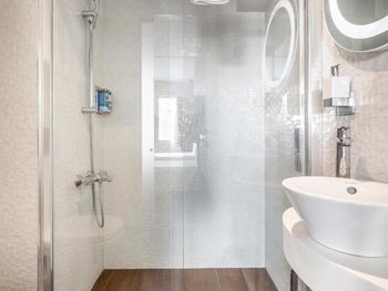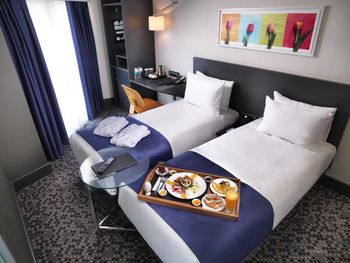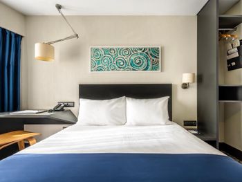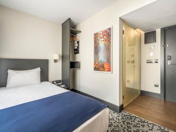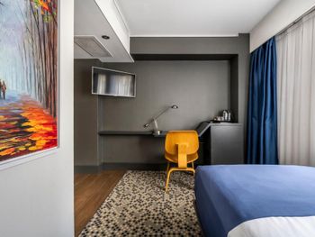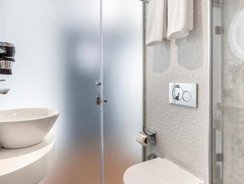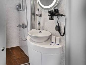 Номер минимально достаточного размера, не хватало куда положить вещи. При закрытом окне ночью было шумно с улицы, в самой гостинице +- шумоизоляция хорошая, зависит от соседей. Открытая стеклянная дверь в уборную перегораживала проход и щелкала при открытии. Сан. узел тесный, отдельный минус минираковине, видимо выбирали дизайнеры. В ванной нет полочки для своих принадлежностей. Завтраки так себе: одно и тоже, НЕТ чая, продукты раскладываются без перчаток.